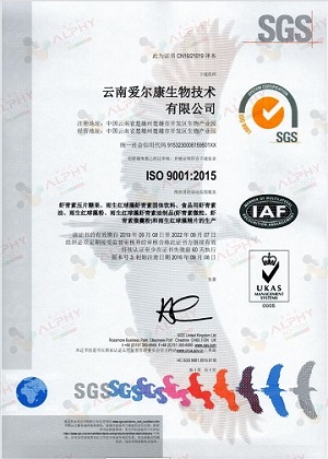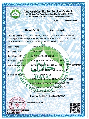 在云南因地制宜建立微藻培养种植中心,充分利用云南楚雄地区的自然优势,做好对源头的把控,每一瓶雨生红球藻以数据的形式,精准的被科学监测;并采用先进的全密闭式玻璃管道系统,确保产品免于生产过程中的交叉污染。虾青素的原料符合ISO9001、美国FDA的GMP认证、美国食品添加剂安全认证、欧盟NovelFood认证。